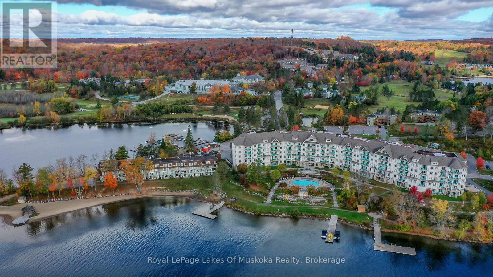 Sought after corner unit on the top floor of Tennisview building 29. 1 bedroom condo is a pleasure to view and it is not currently on the rental program so a bonus with no HST on the purchase price and ready for you and your family to use immediately! Beautiful sunlit open concept unit with panoramic views over the golf course and the fabulous Deerhurst resort grounds. Your spacious own private deck plus another common deck area which the owners have enjoyed exclusive use of due to its private location at the condos front door. You can enjoy the desirable wide sand beach at the lakefront on prestigious Peninsula Lake which offers kayaks, paddle boards, canoes and more. There is a beautiful outdoor pool close by your unit and inside pool and sports complex as well as dining at the Pavilion. There are trails for walking, mountain biking, courts for tennis and pickle ball, golfing at the PGA Highlands and Lakeside, a fun 9 hole course. Tree top trekking, food trucks, shops, art gallery, golf simulator, climbing wall. Downhill skiing down the road, cross country, snowmobile, snow shoe, ice fishing in the winter on site. Unbelievable lifestyle property to use or if you wish, put it on the rental program or flex program to rent and use...your lifestyle, your choice. This is a premiere resort in the beautiful town of Huntsville which also offers a vibrant and dynamic downtown with boat access from Deerhurst to restaurants and shops. An ideal opportunity for your step into this sought after area. (id:35324)